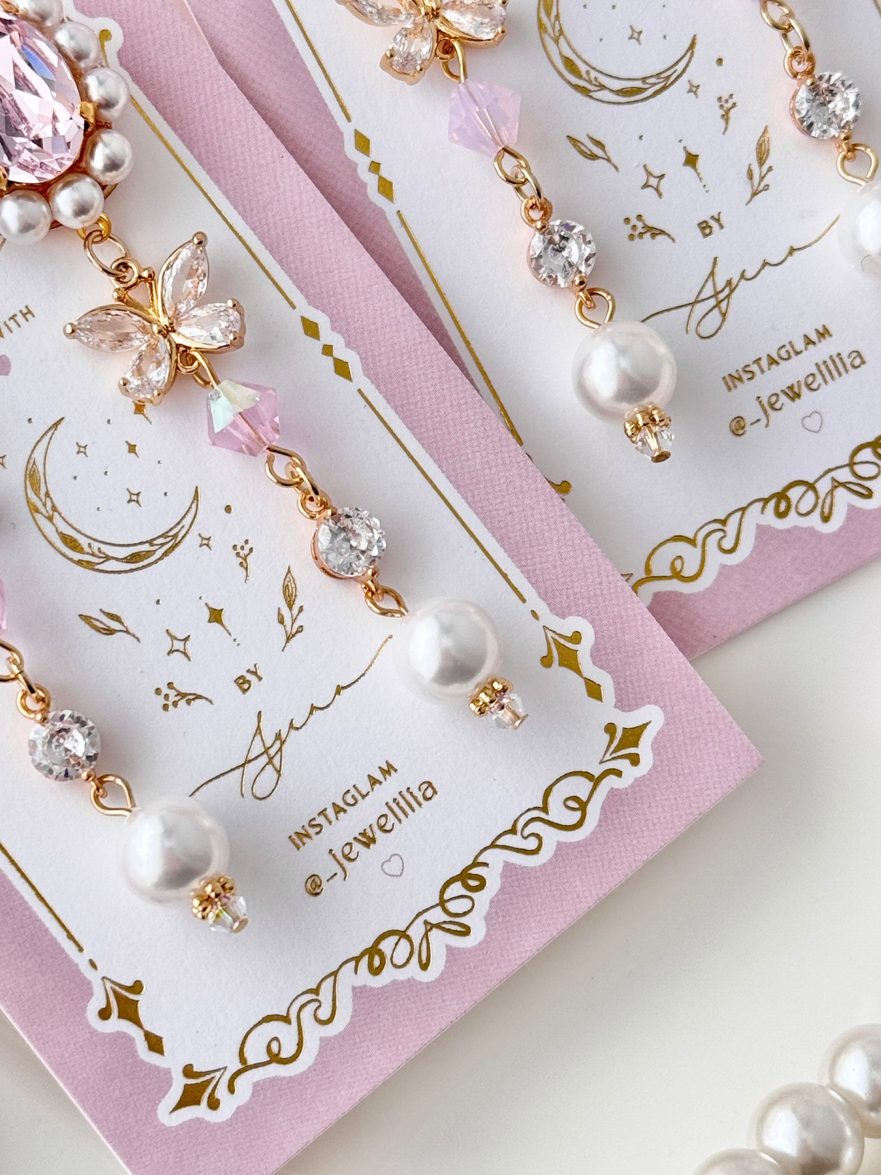 ピアスのキャッチ、イヤリングのゴムや台紙の購入はお問い合わせください。