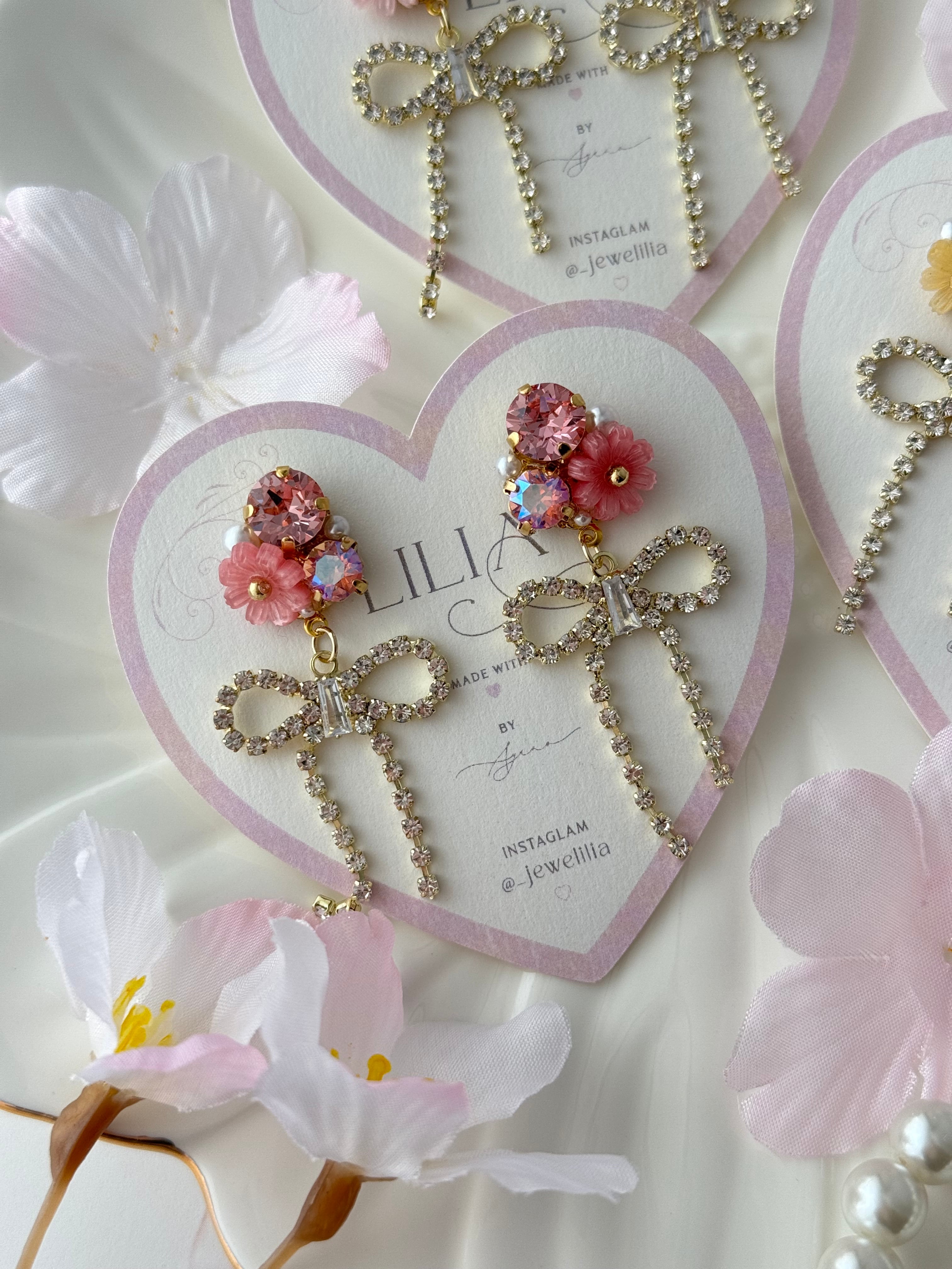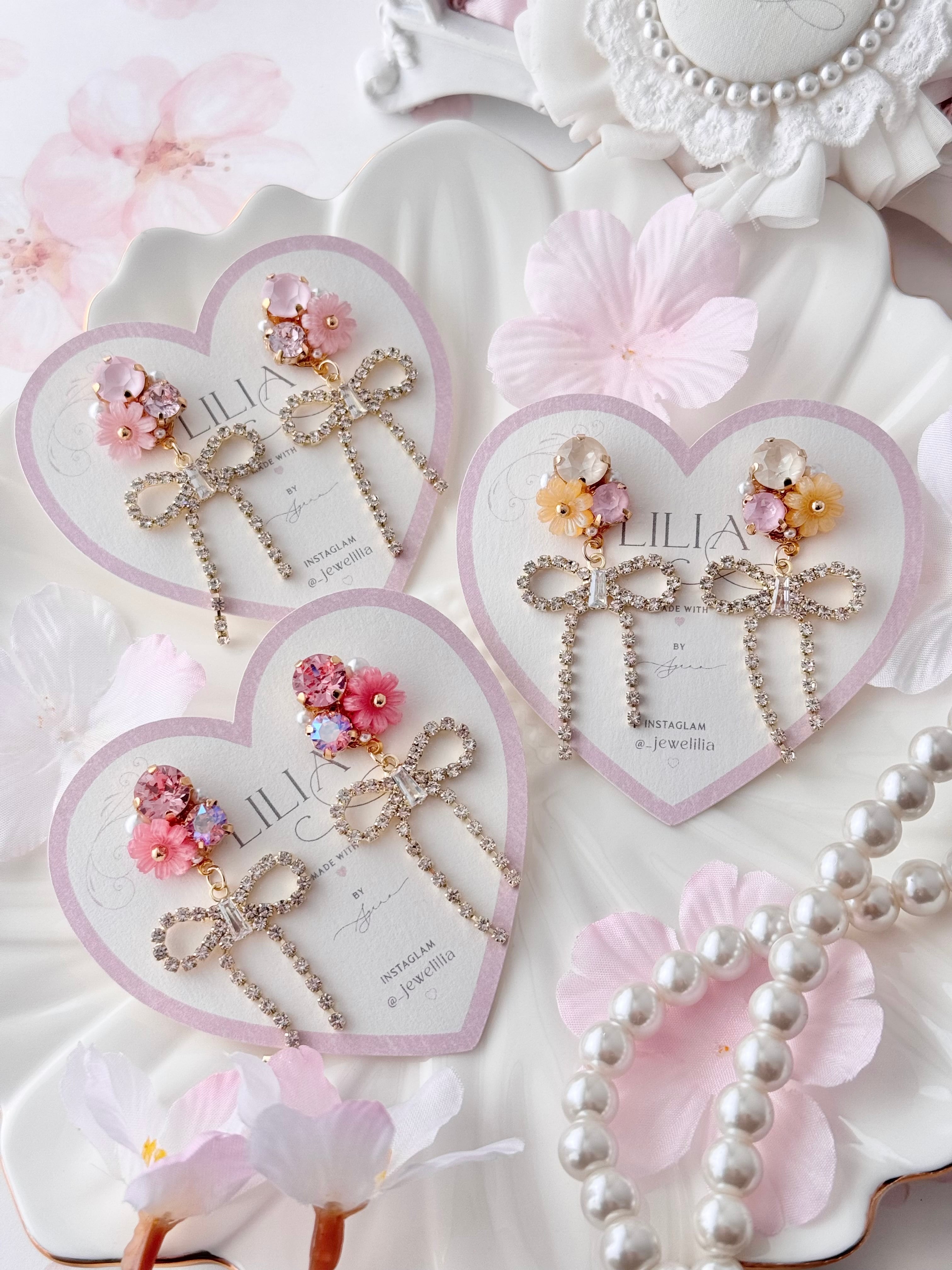 ピアスのキャッチ、イヤリングのゴムや台紙の購入はお問い合わせください。