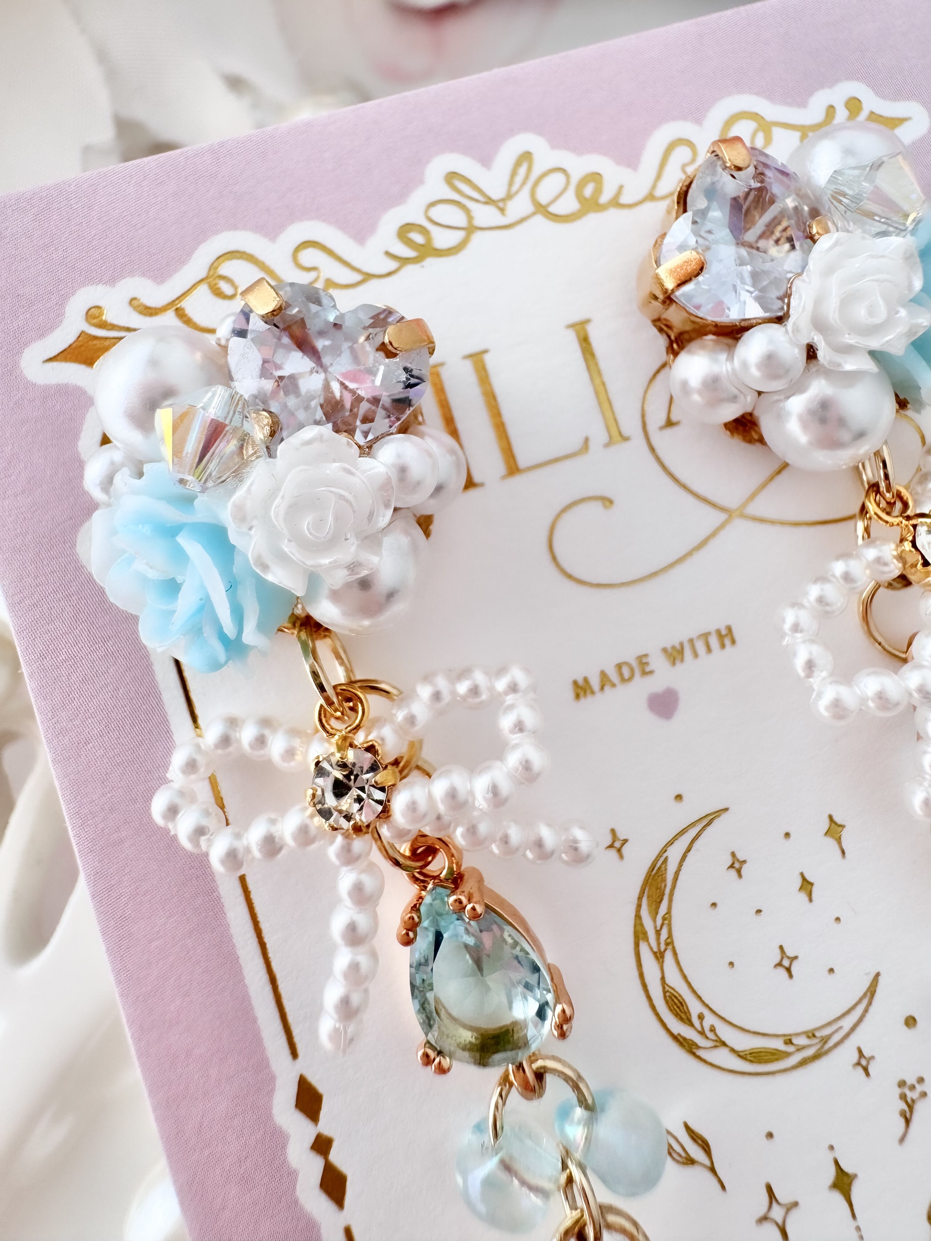 ビジュー部分にはレジンを主に使用しておりますので、レジンアレルギーの方はご注意ください。