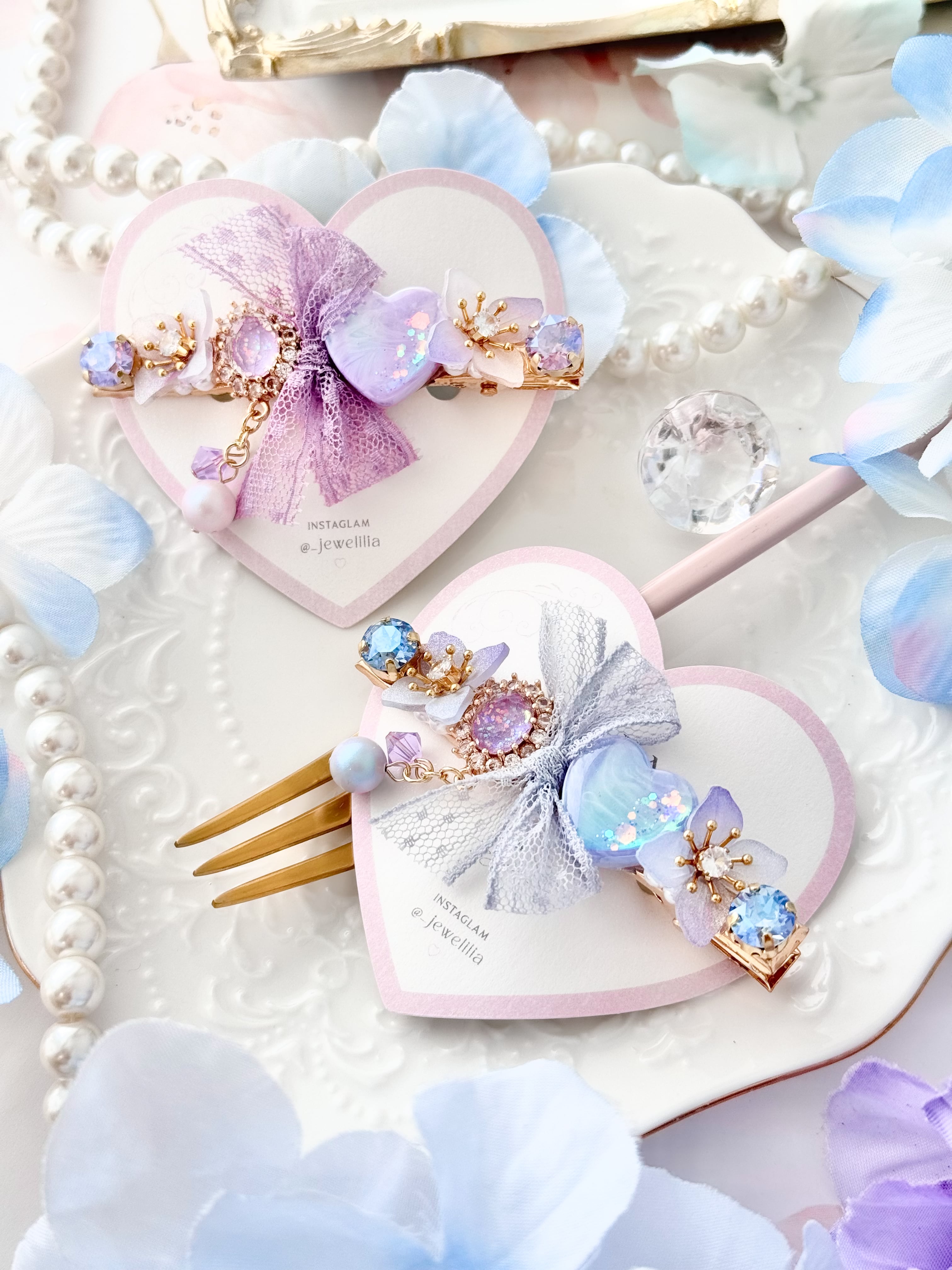 紫陽花パーツを使ったこの時期ピッタリのヘアアクセサリー♡