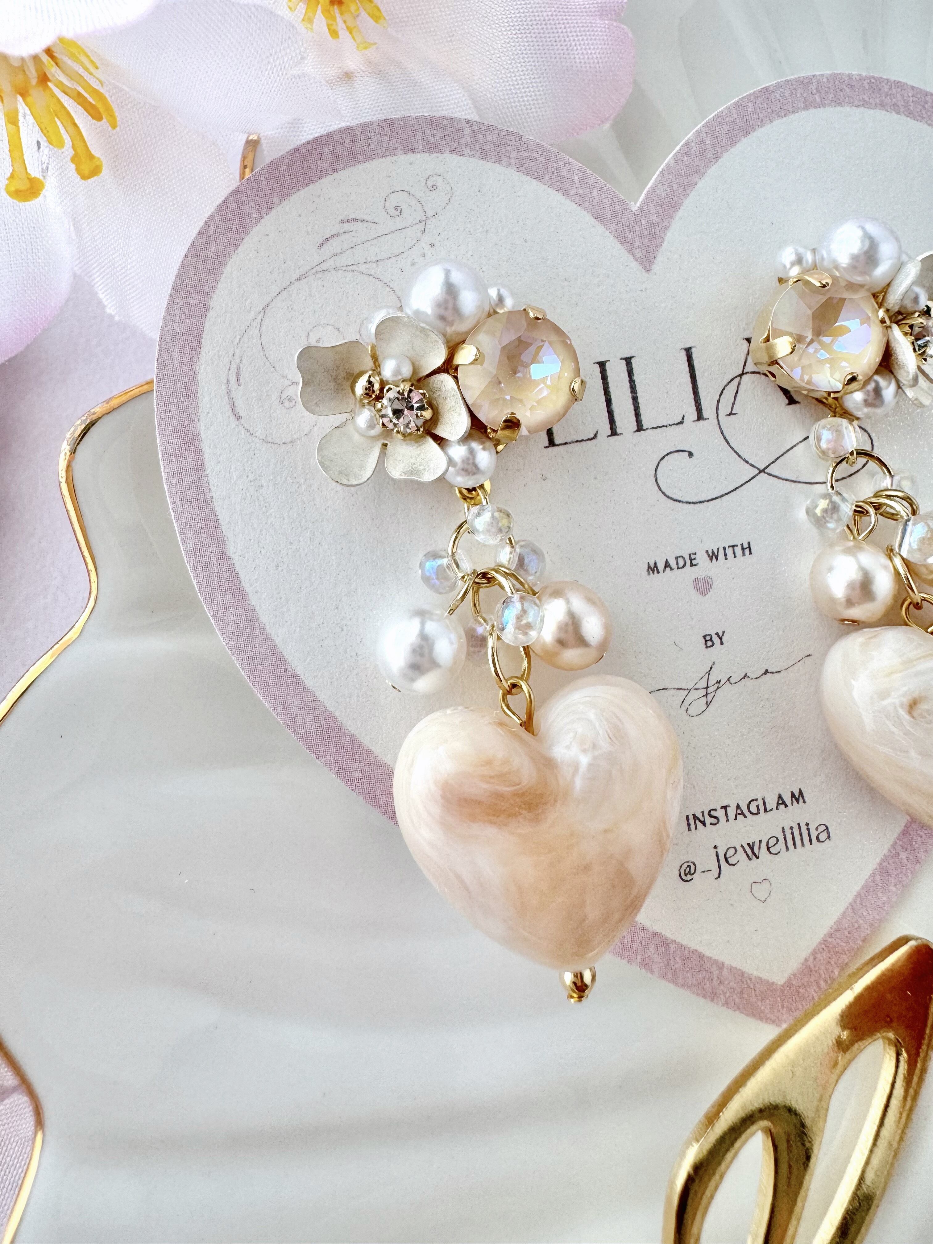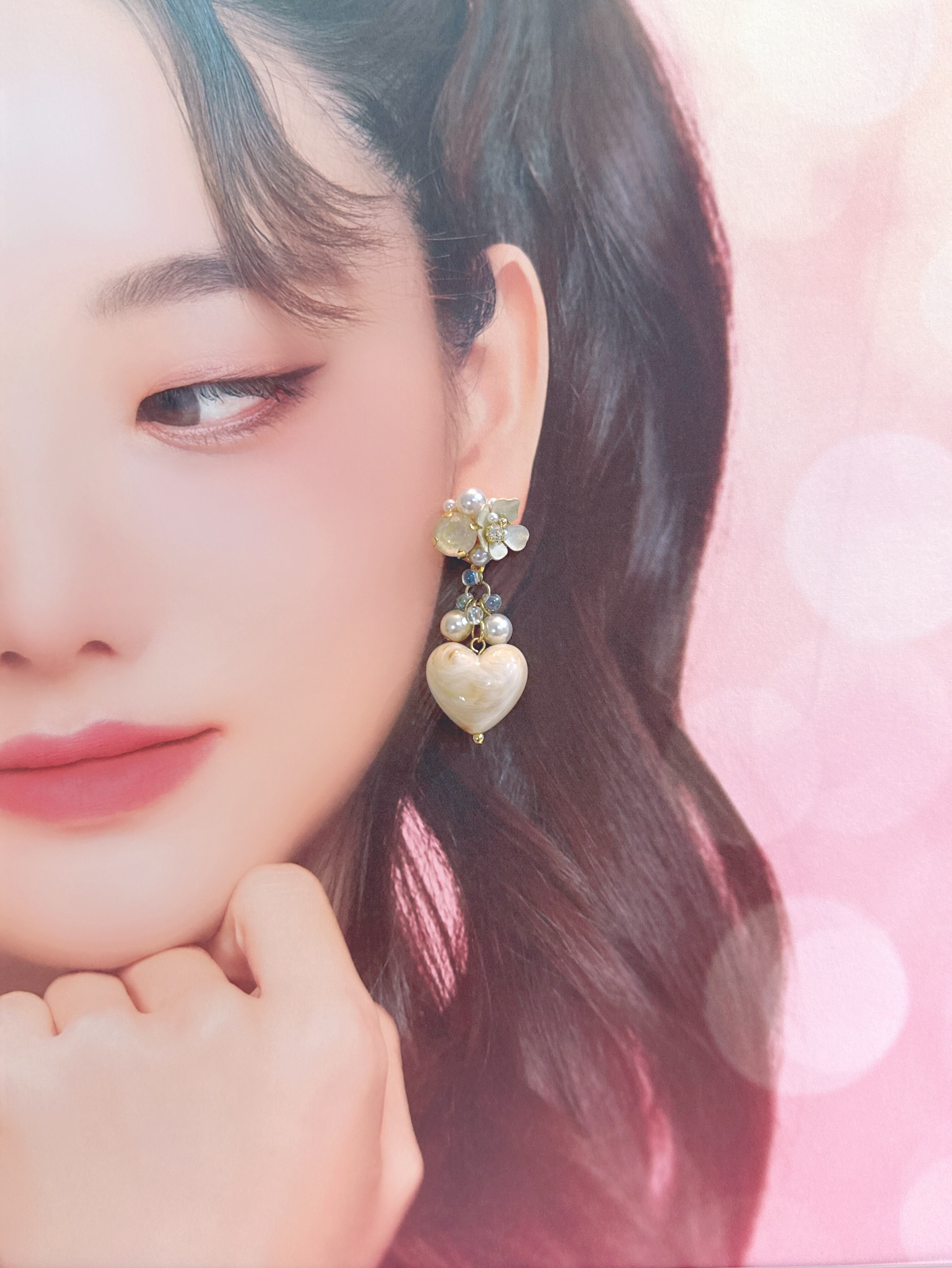 ビジュー部分にはレジンを主に使用しておりますので、レジンアレルギーの方はご注意ください。