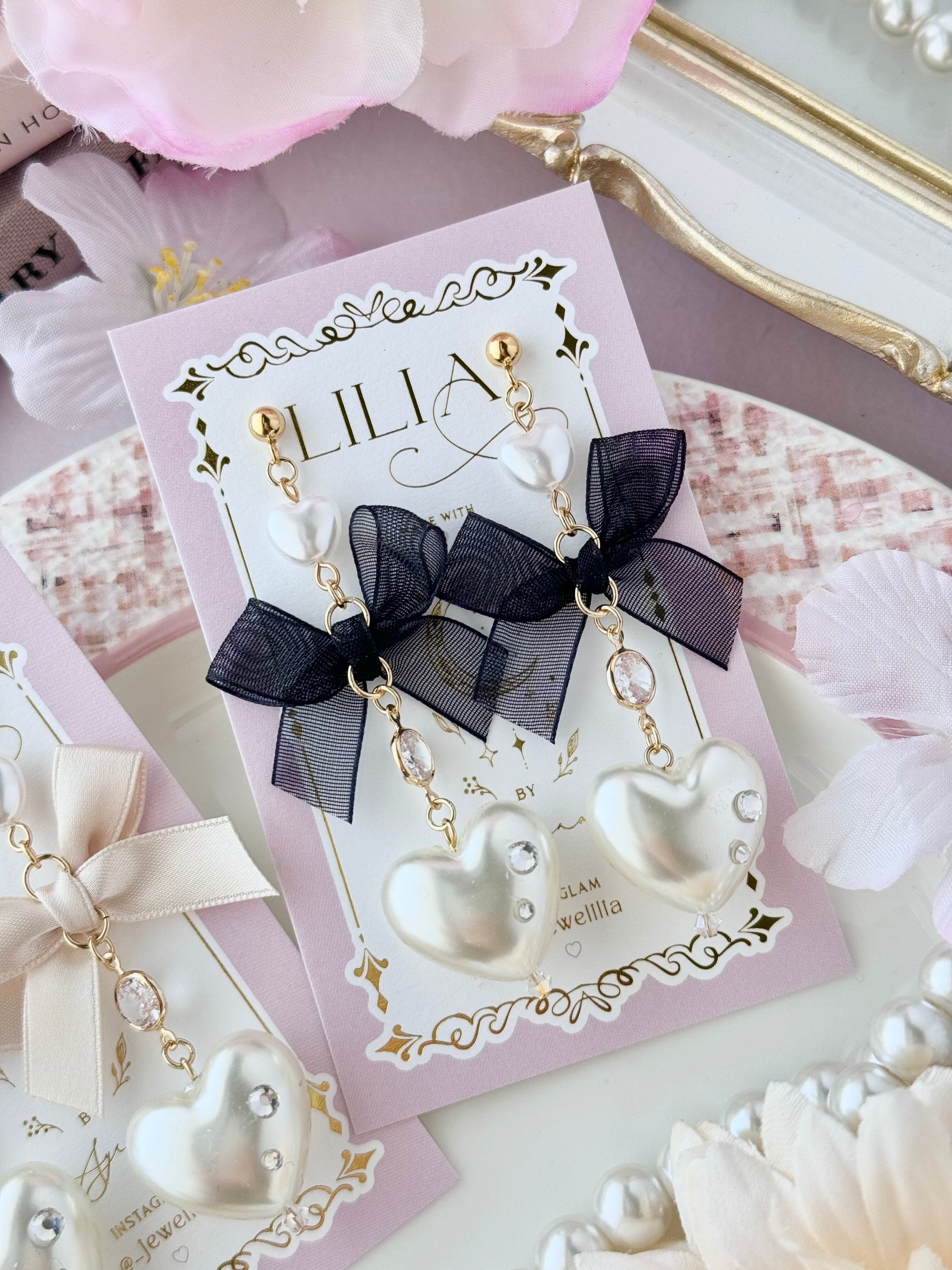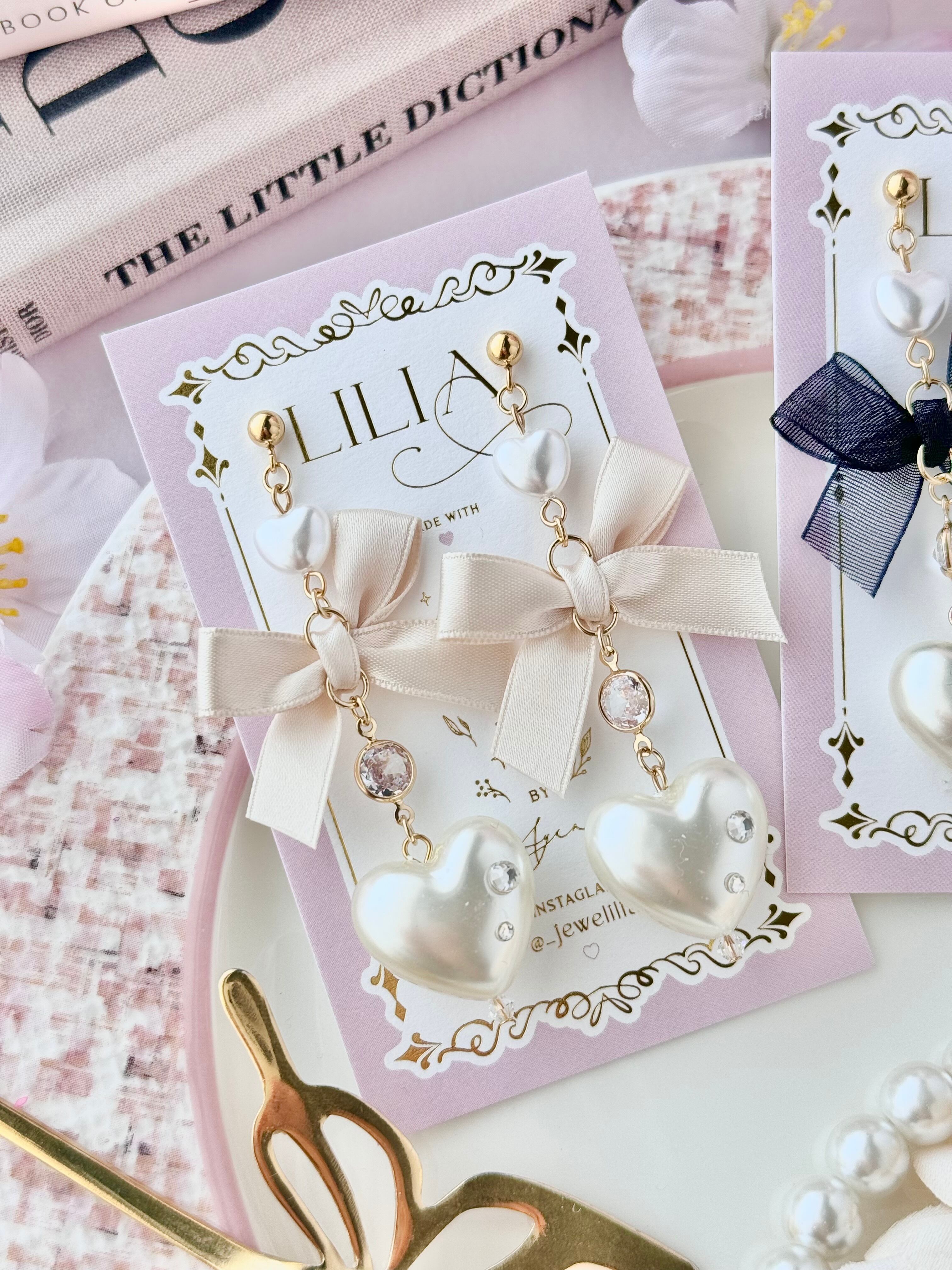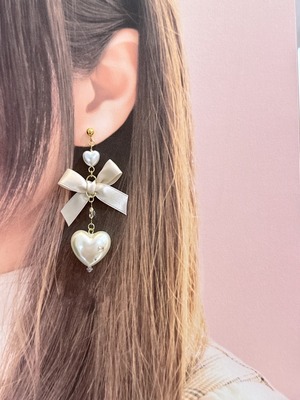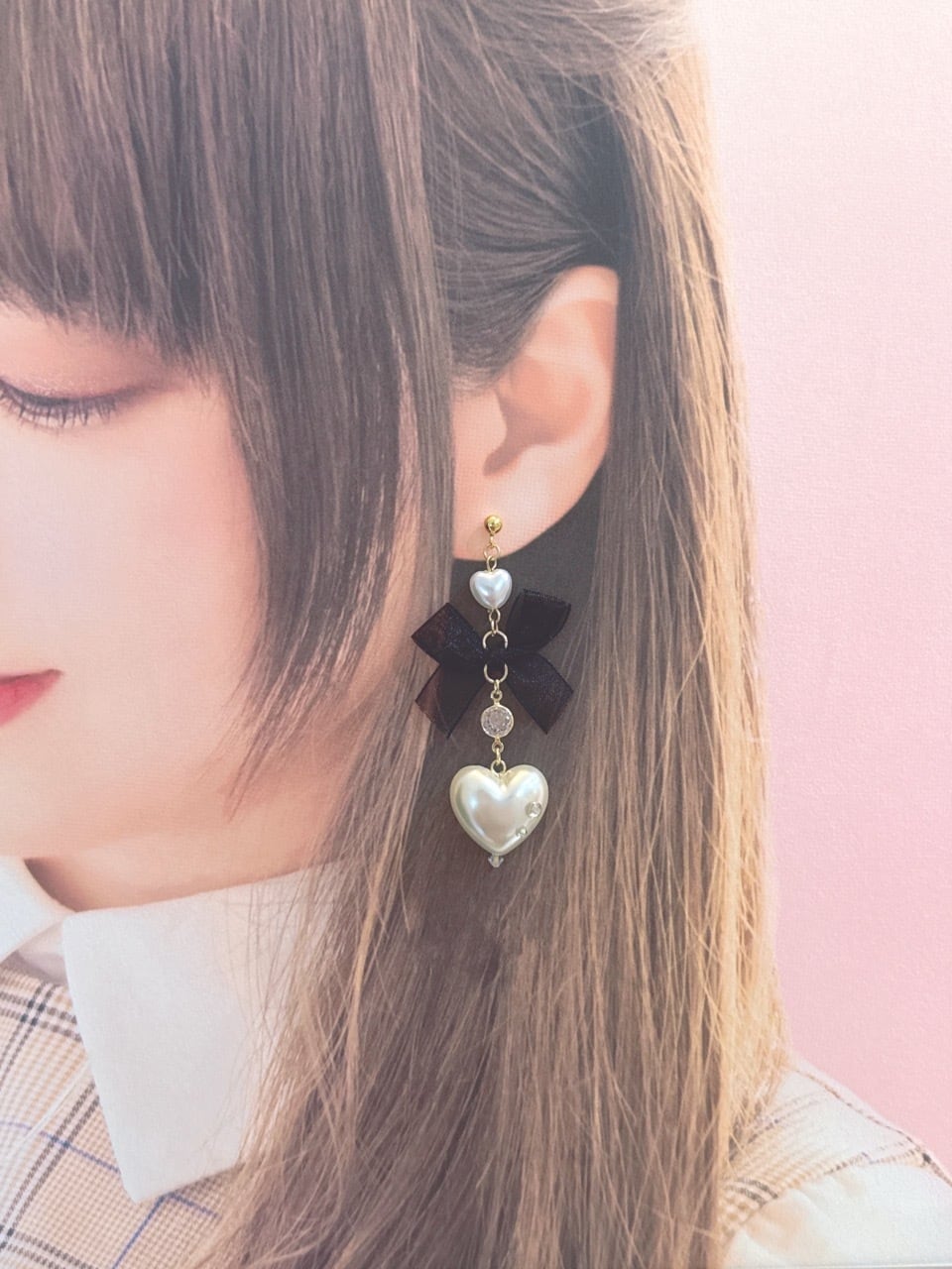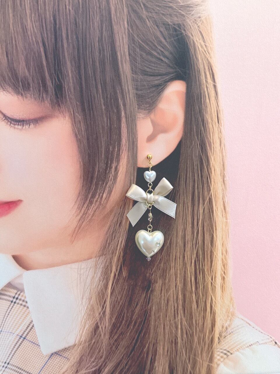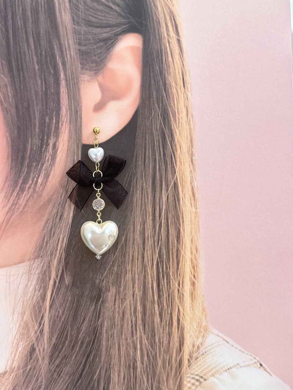 パールハートにはストーンを散らし、ちょっぴりロングなアクセサリーです✩.*˚