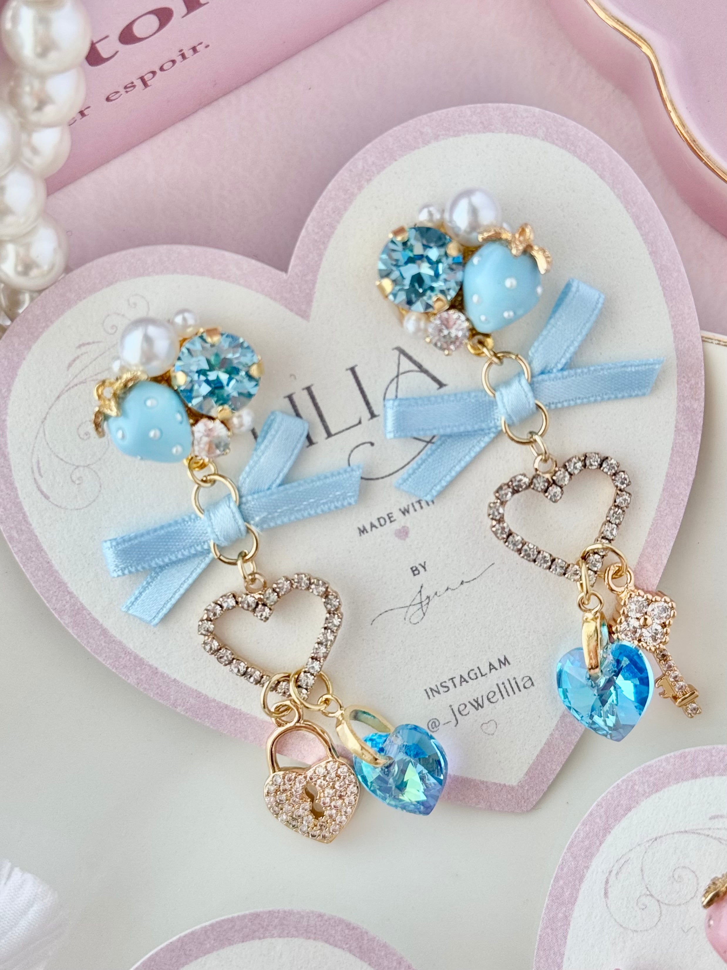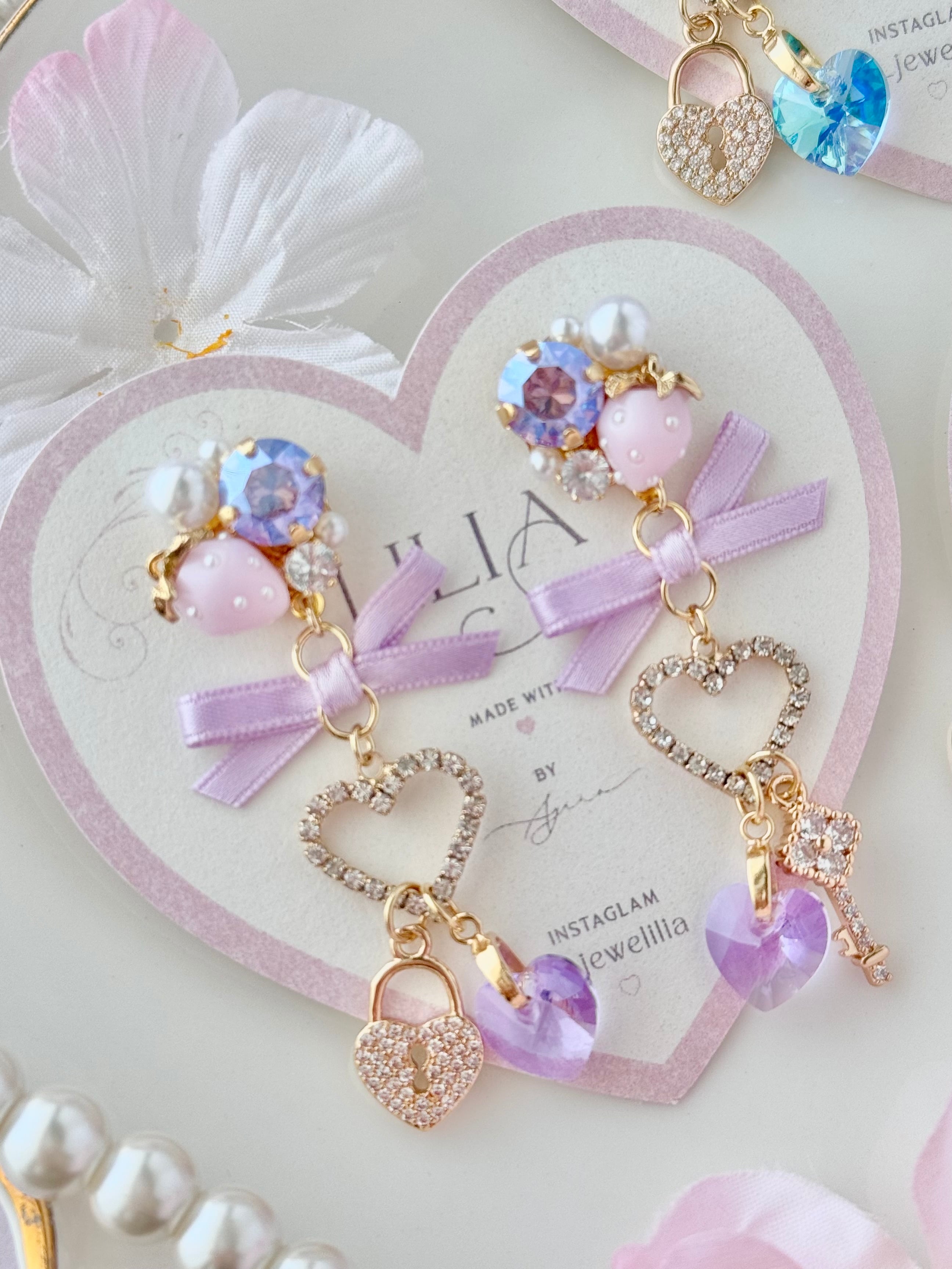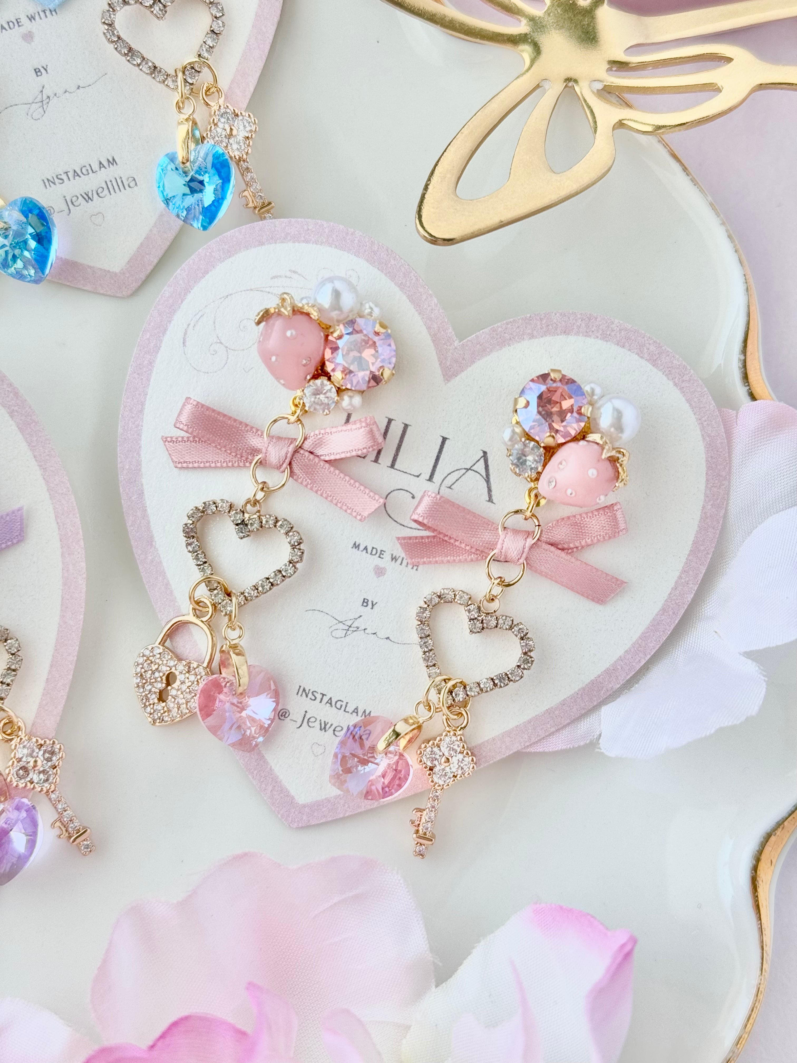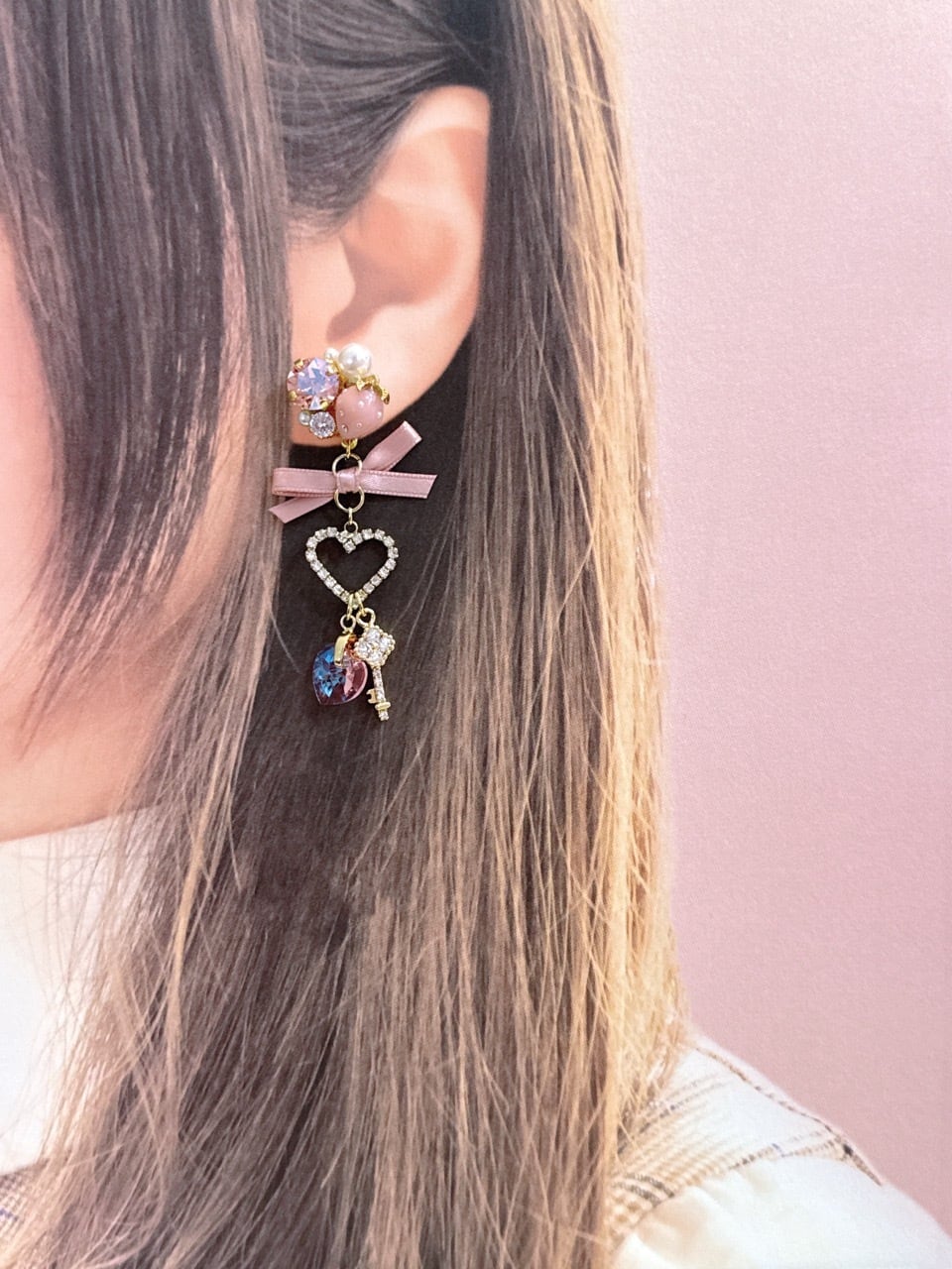 ジルコニアのキラキラ鍵チャームとハートスワロの鉄板可愛い組み合わせと、女の子の可愛いをたくさん詰め込みました♡♡