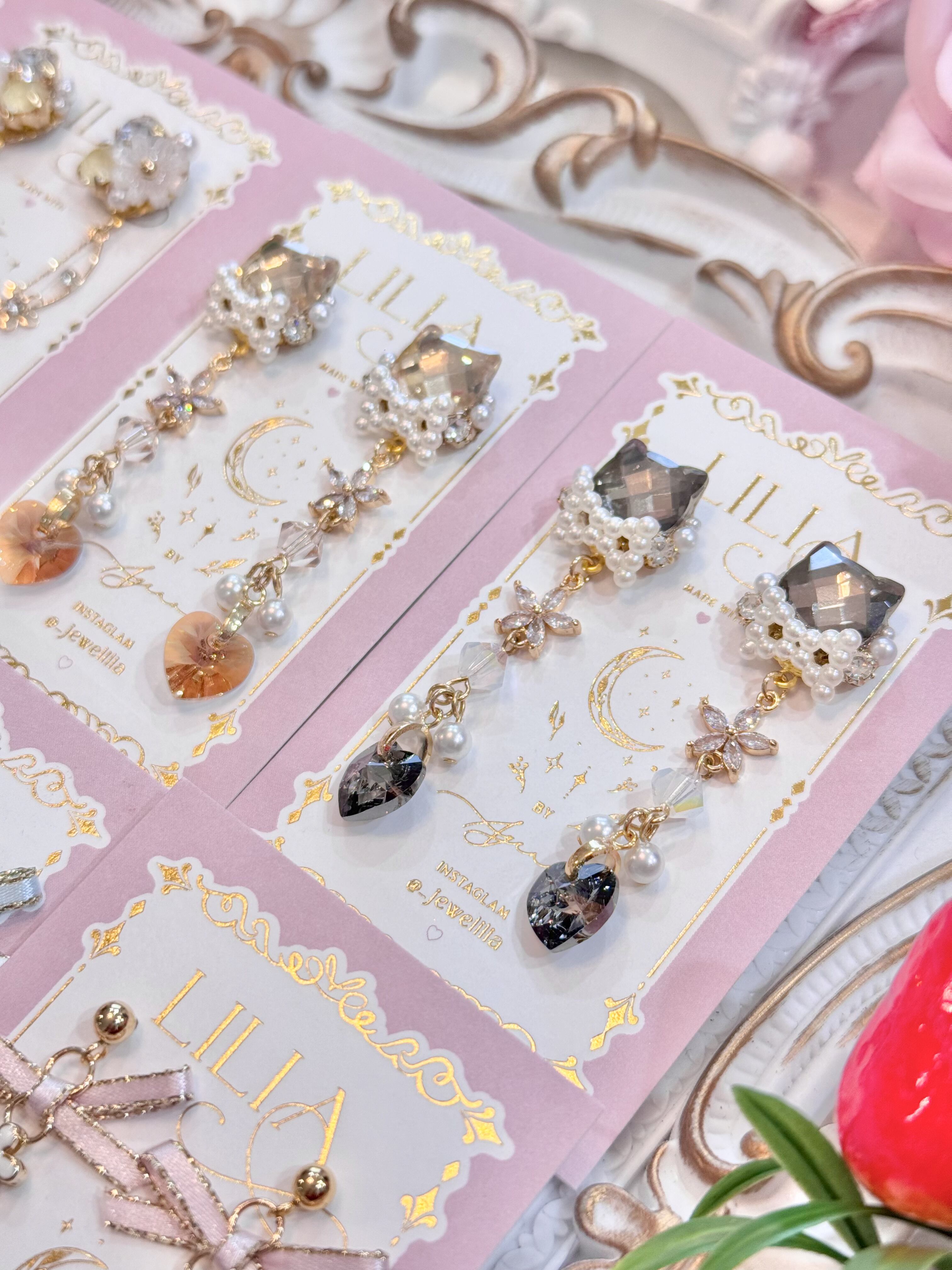 ピアスのキャッチ、イヤリングのゴムや台紙の購入はお問い合わせください。