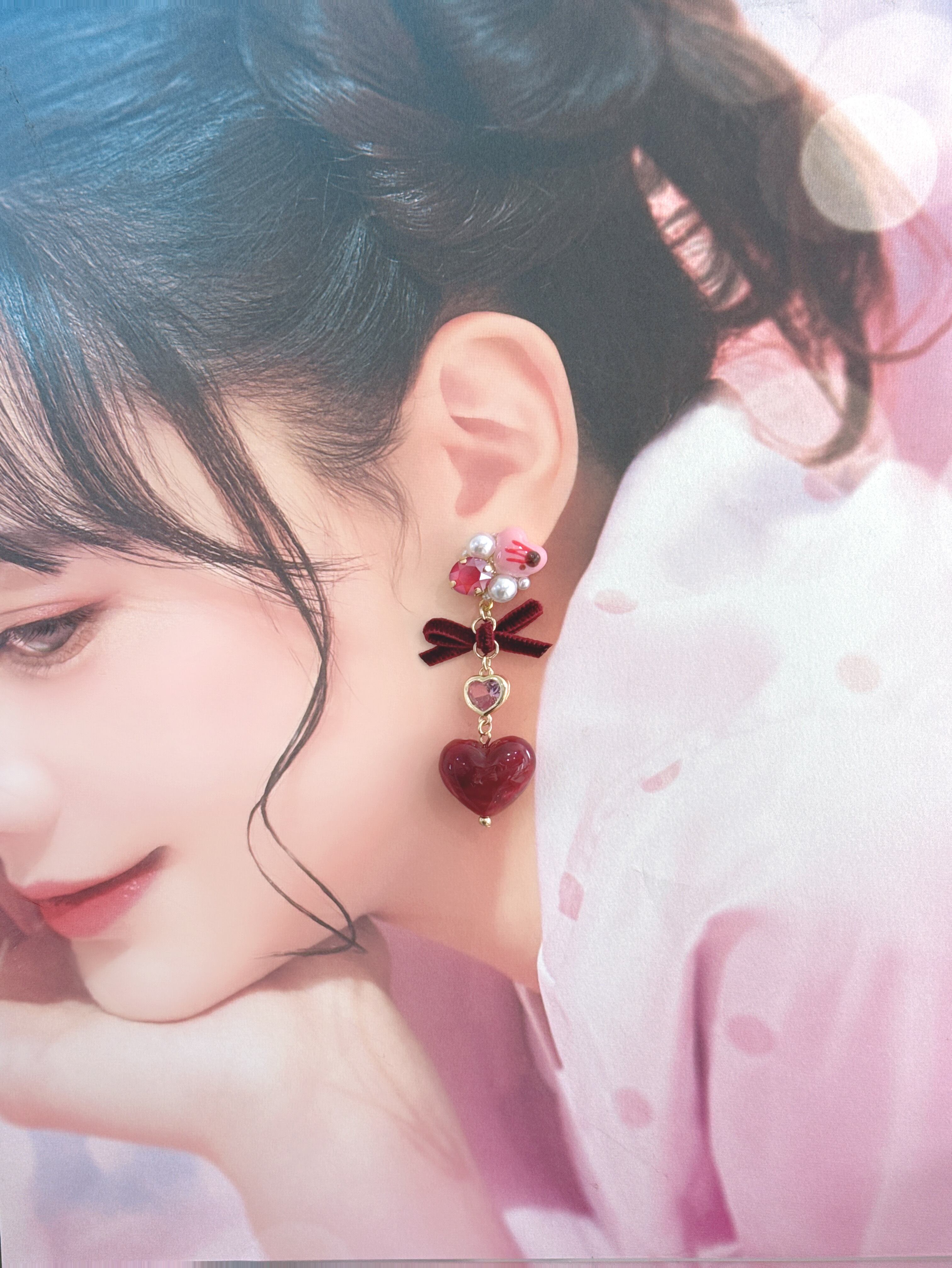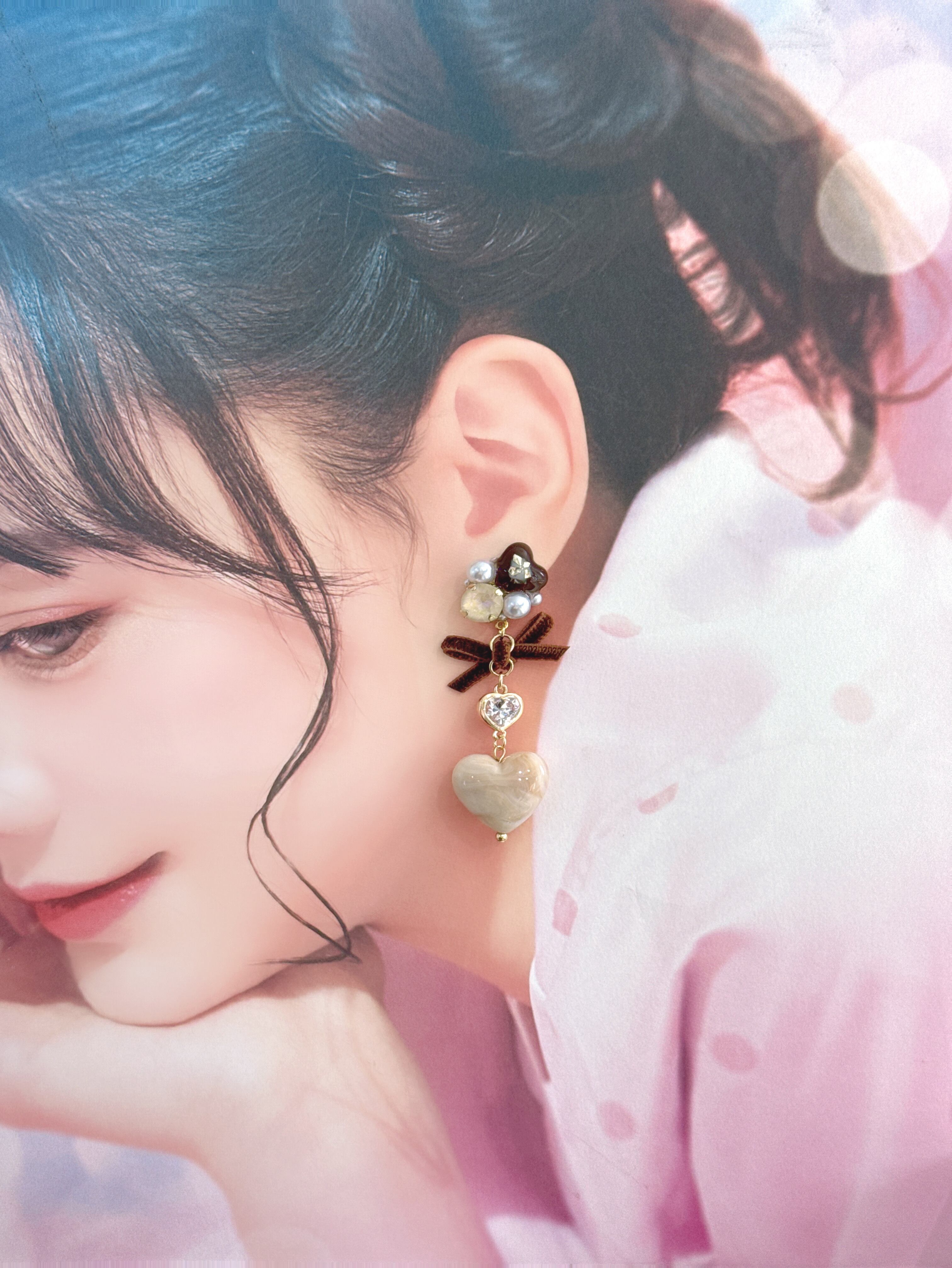 ビジュー部分にはレジンを主に使用しておりますので、レジンアレルギーの方はご注意ください。